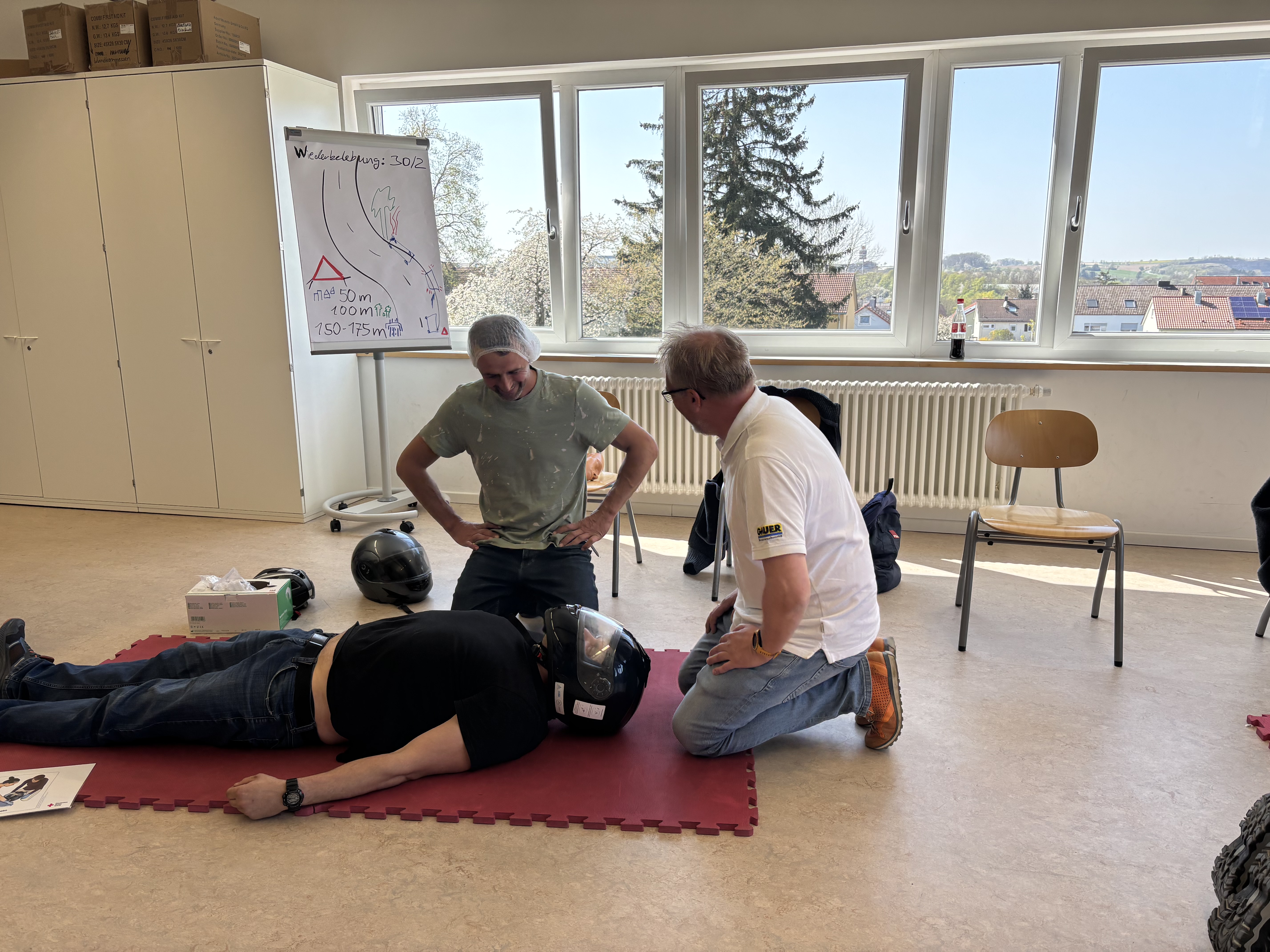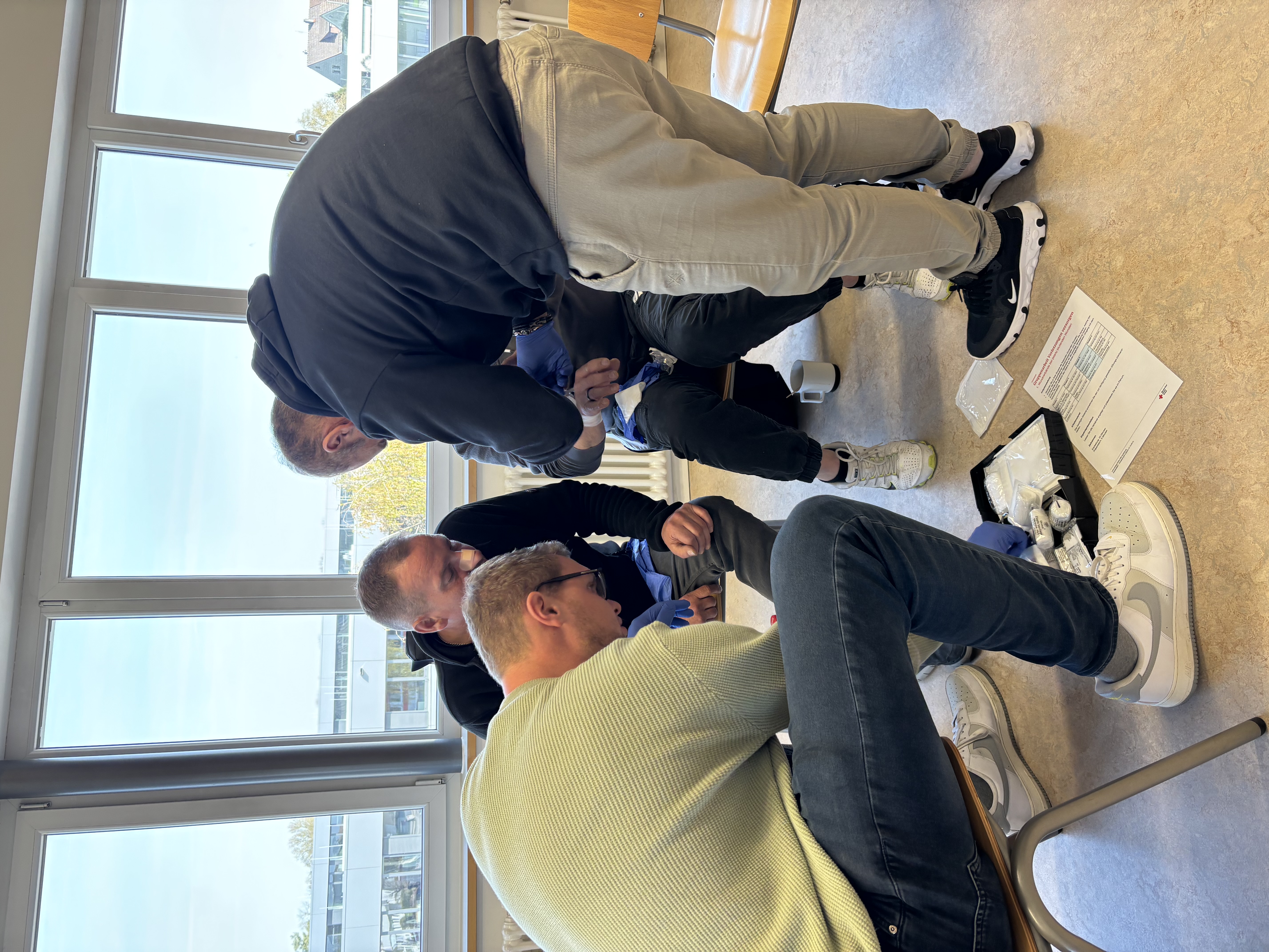Im Fokus des Kurses standen die Vertiefung und praktische Anwendung zentraler Erste-Hilfe-Maßnahmen – darunter die stabile Seitenlage, die Herz-Lungen-Wiederbelebung sowie der Umgang mit typischen Notfallsituationen am Arbeitsplatz. Durch praxisnahe Übungen wurde das Gelernte direkt gefestigt.