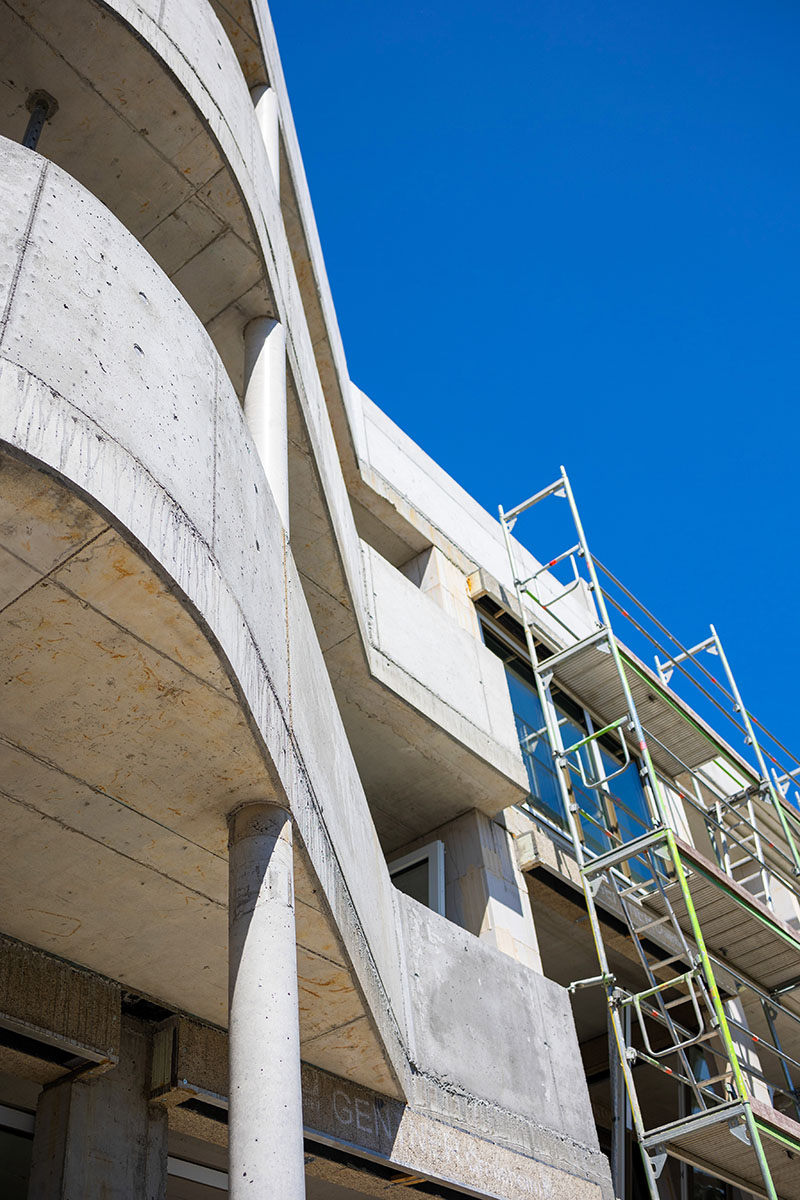 Beste Wohn- und Lebensqualität inmitten der größten Stadt des Hohenlohekreises – Öhringen im Nordwesten Baden-Württembergs. Die ungewöhnliche Architektursprache der 4 Mehrfamilienhäuser forderte absolute Präzision von unseren Rohbauern. Traditionell fühlen wir uns von GAUER in herausfordernden Bauprojekten am wohlsten. Das Projekt im Wollreffenweg war eins davon. Wir dürfen Stolz auf den Rohdiamanten sein, den wir an die weiteren Gewerke im Juli 2023 übergeben konnten. Die auffallenden Balkone liegen absolut in der Kurve.